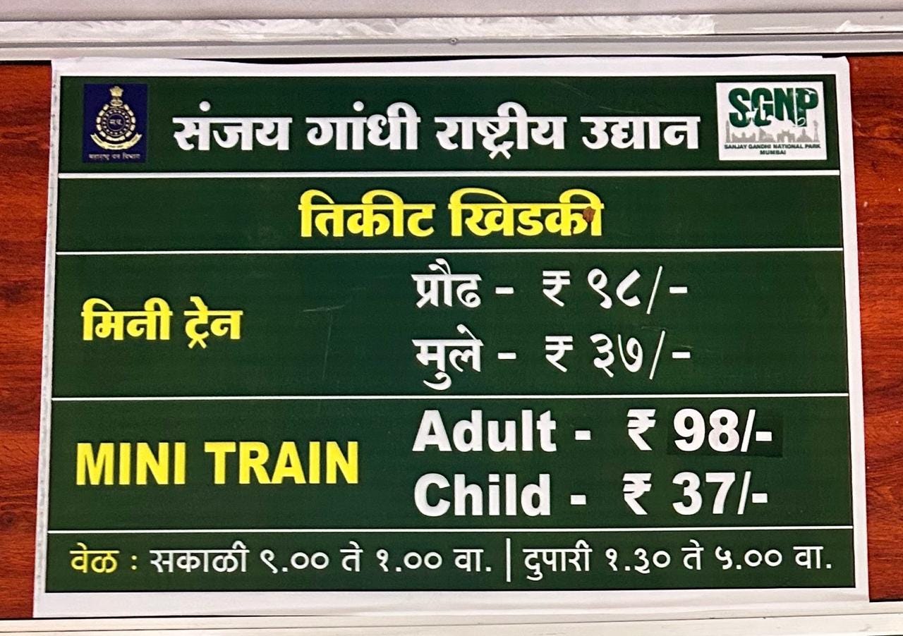 We’d been wanting to take Tara and Tashi on the Van Rani for a while now. For those who don’t know, Van Rani (literally “Queen of the Forest”) is SGNP’s iconic toy train. It’s been around since the 1970s and has been a part of countless Mumbai childhoods.